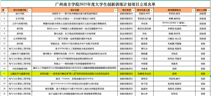 张明教授的项目《食药同源——富贵菜中槲皮素“降三高”药用机理及提取方法的优化研究》申报立项了2025年度大学生创新训练计划项目。