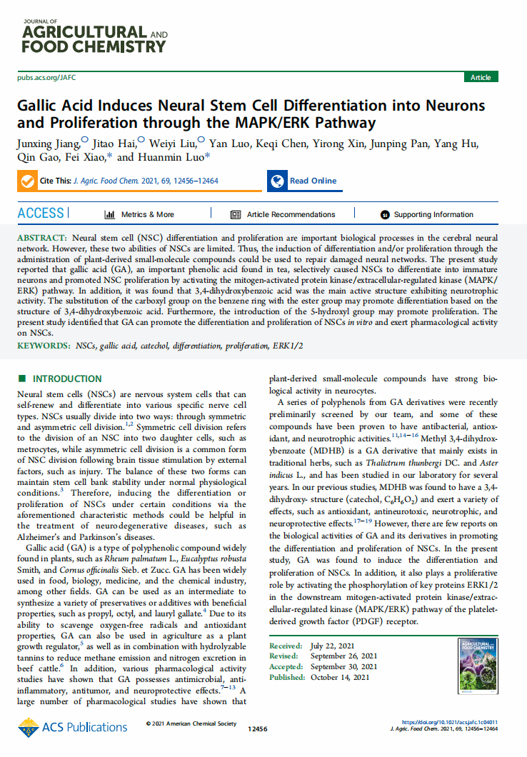 Gallic Acid Induces Neural Stem Cell Differentiation into Neuronsand Proliferation through the MAPK/ERK Pathway