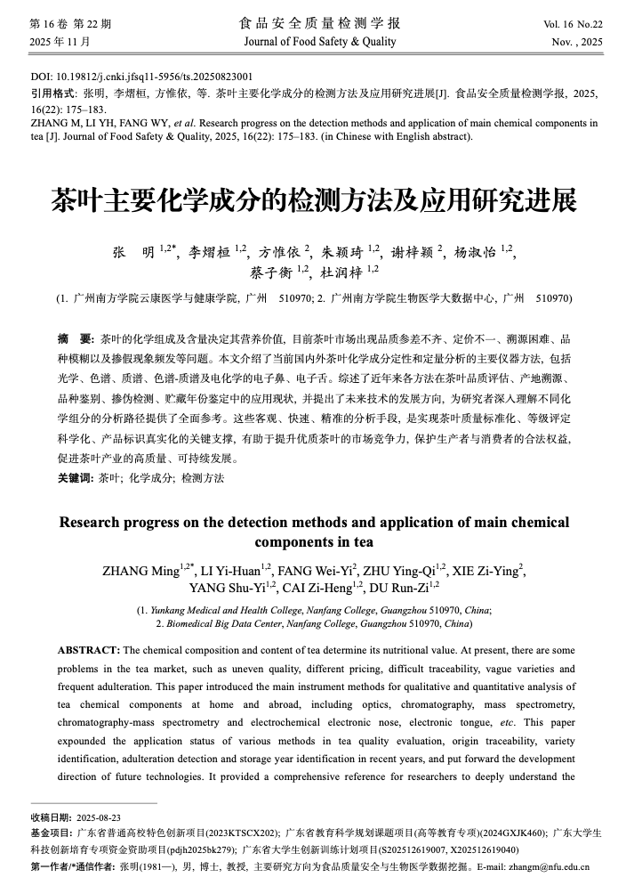 茶叶主要化学成分的检测方法及应用研究进展