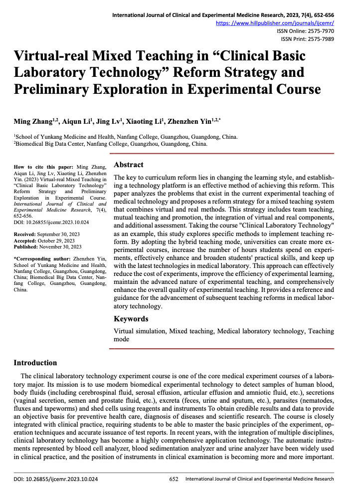 Virtual-real Mixed Teaching in “Clinical Basic Laboratory Technology” Reform Strategy and Preliminary Exploration in Experimental Course