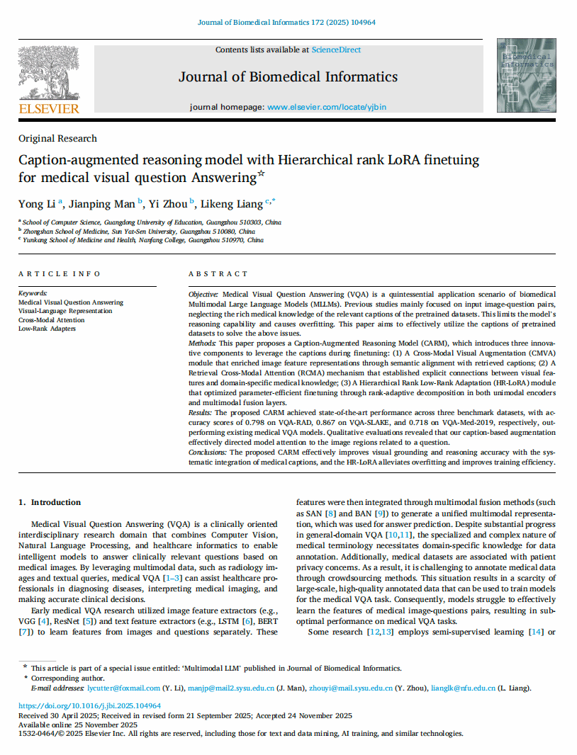 Caption-augmented reasoning model with Hierarchical rank LoRA finetuing for medical visual question Answering