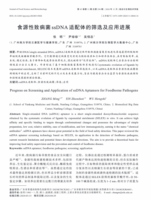 食源性致病菌 ssDNA 适配体的筛选及应用进展