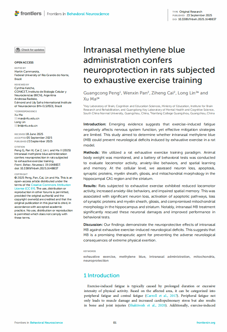 Intranasal methylene blue administration confers neuroprotection in rats subjected to exhaustive exercise training